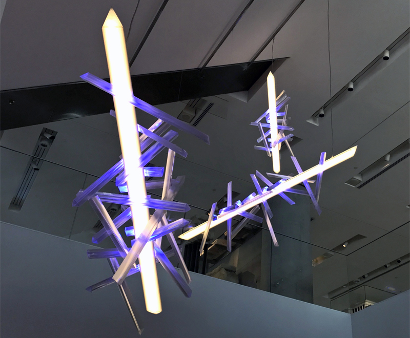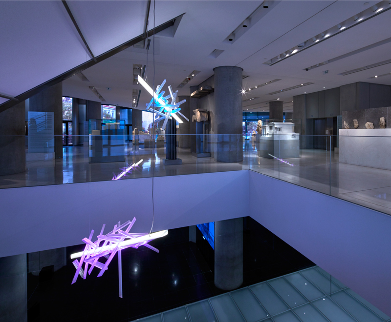 1-2. Το φωτεινό γλυπτό "La Traviata" στο αίθριο του ισογείου του Μουσείου Ακρόπολης.