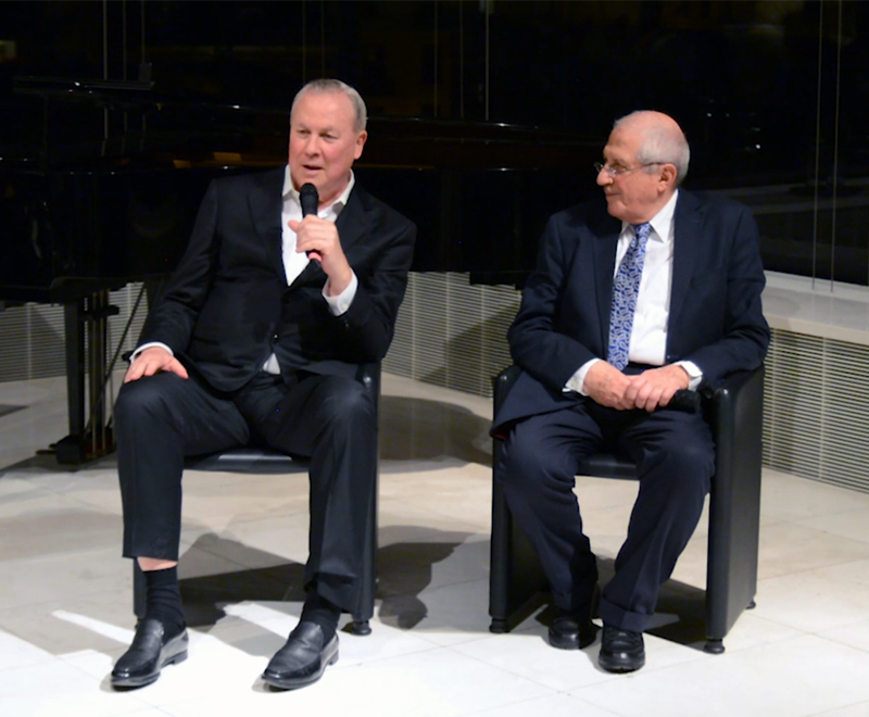 3. Ο εκλιπών Robert Wilson με τον αείμνηστο Πρόεδρο του Μουσείου Ακρόπολης, Καθηγητή Δημήτρη Παντερμαλή, σε συζήτηση στην Αίθουσα του Παρθενώνα στις 6 Απριλίου 2017, με θέμα τη σημασία του φωτός στο θέατρο, την τέχνη και την Ιστορία.