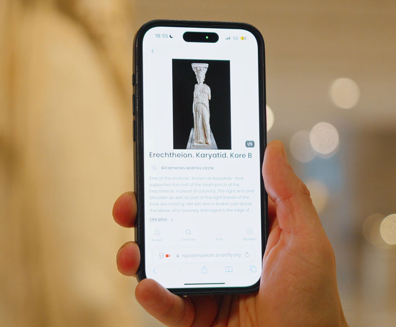 The Acropolis Museum offers its visitors a unique, free digital experience, developed in collaboration with Smartify. The Museum’s digital guide offers personalized, interactive access to its permanent collections and serves as the ideal tool for individual visitors, families, and international travelers. Using their personal smart devices, visitors can explore the exhibits in an interactive and user-friendly way, enriching their experience within the Museum’s exhibition areas.